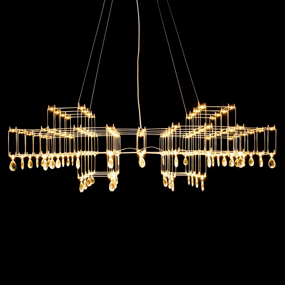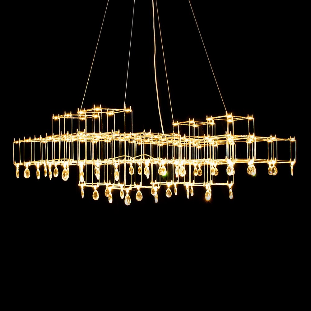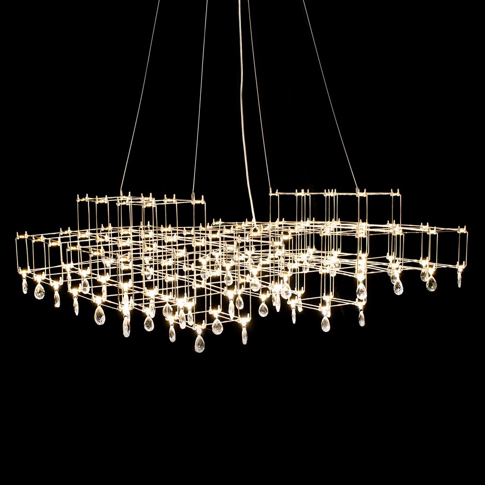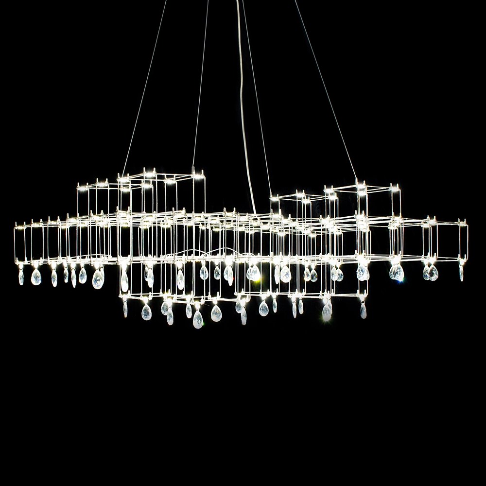 Очень необычный подвесной светильник – изысканное сочетание лаконичного минимализма и романтичной классики. Строгая геометрия каркаса из тонких прутков нержавеющей стали неожиданно дополняется подвесками из граненого стекла или хрусталя. Связующим звеном служат светодиоды, расположенные по всей конструкции. Подобно творчеству Леонардо да Винчи, по имени которого названа модель, люстра Leonardo объединяет строгие научные каноны и текучесть искусства. Становится удачным элементом как современного, так и неоклассического интерьера. Светильник изготавливается вручную, по стандартным и индивидуальным размерам. Материал подвесок можно выбирать: прозрачное или дымчатое, радужное стекло, хрусталь.