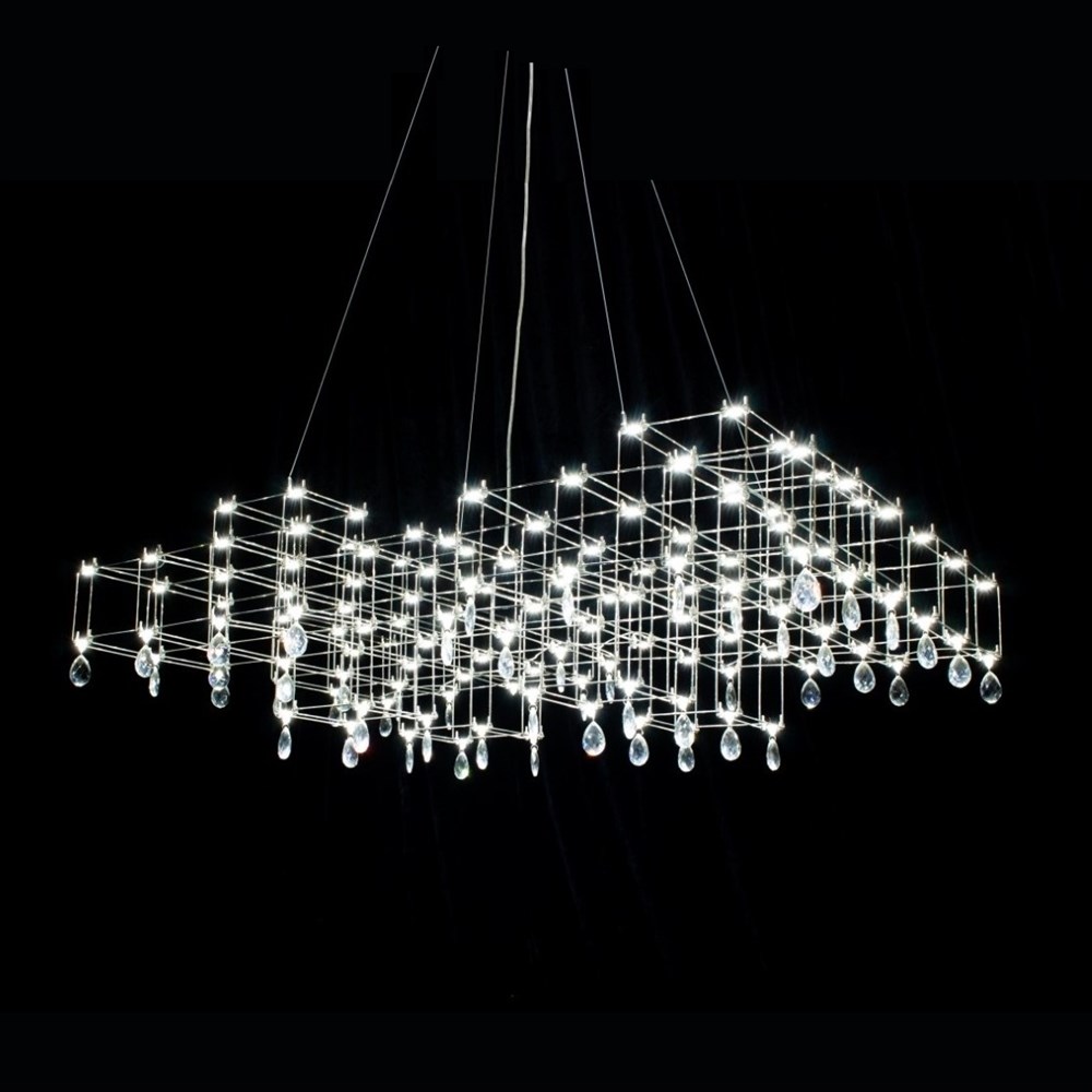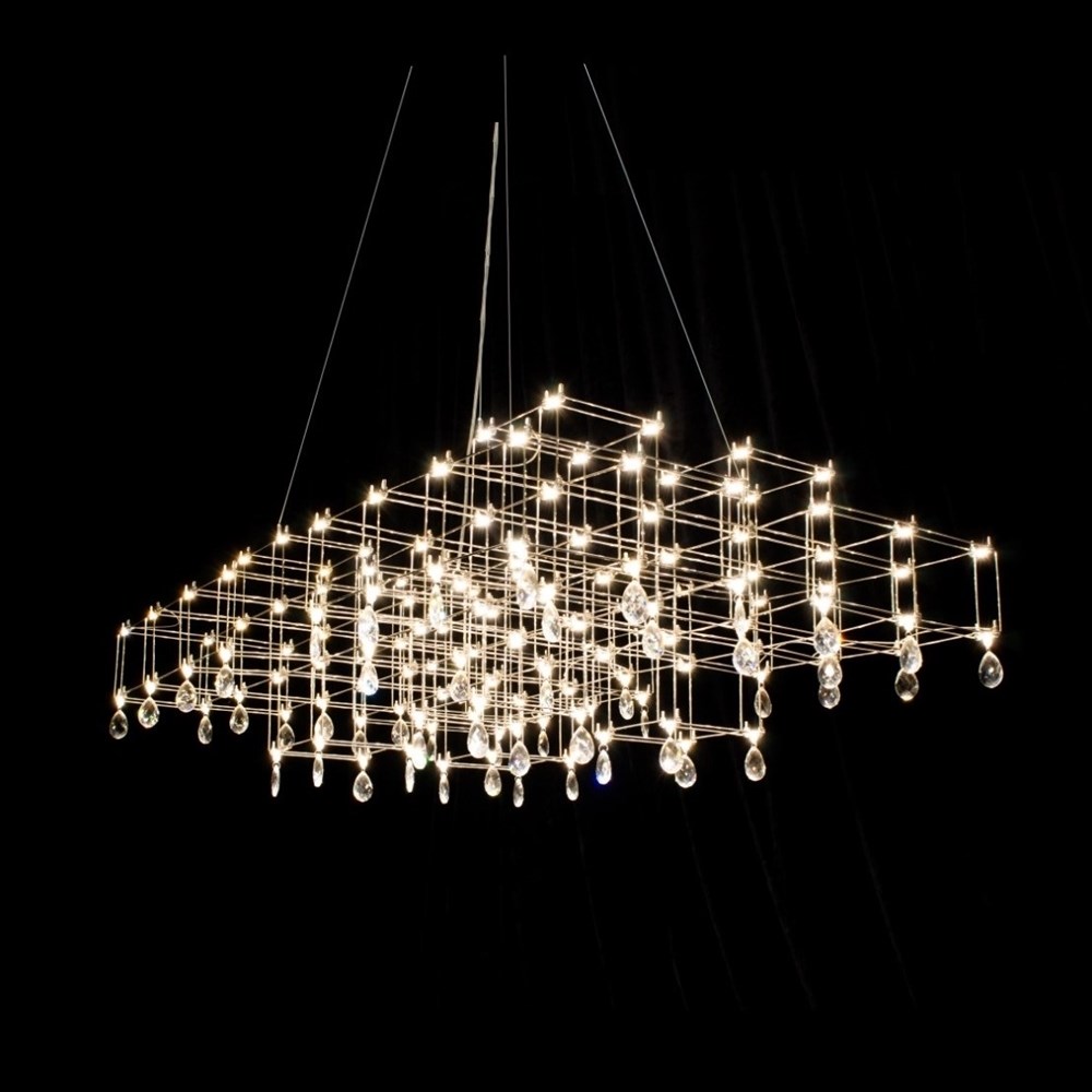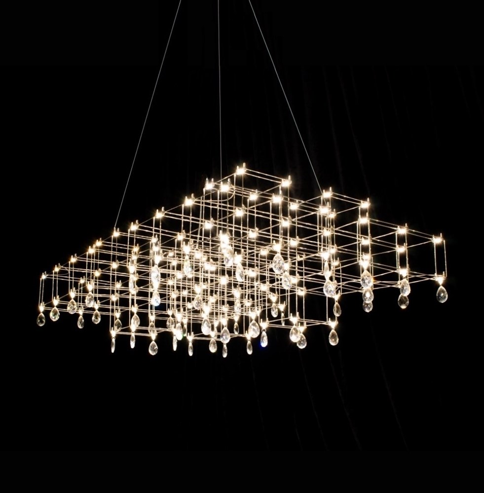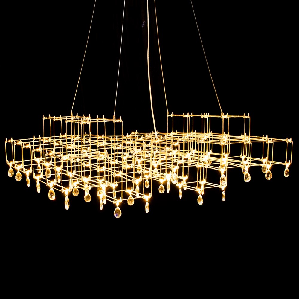 Очень необычный подвесной светильник – изысканное сочетание лаконичного минимализма и романтичной классики. Строгая геометрия каркаса из тонких прутков нержавеющей стали неожиданно дополняется подвесками из граненого стекла или хрусталя. Связующим звеном служат светодиоды, расположенные по всей конструкции. Подобно творчеству Леонардо да Винчи, по имени которого названа модель, люстра Leonardo объединяет строгие научные каноны и текучесть искусства. Становится удачным элементом как современного, так и неоклассического интерьера. Светильник изготавливается вручную, по стандартным и индивидуальным размерам. Материал подвесок можно выбирать: прозрачное или дымчатое, радужное стекло, хрусталь.