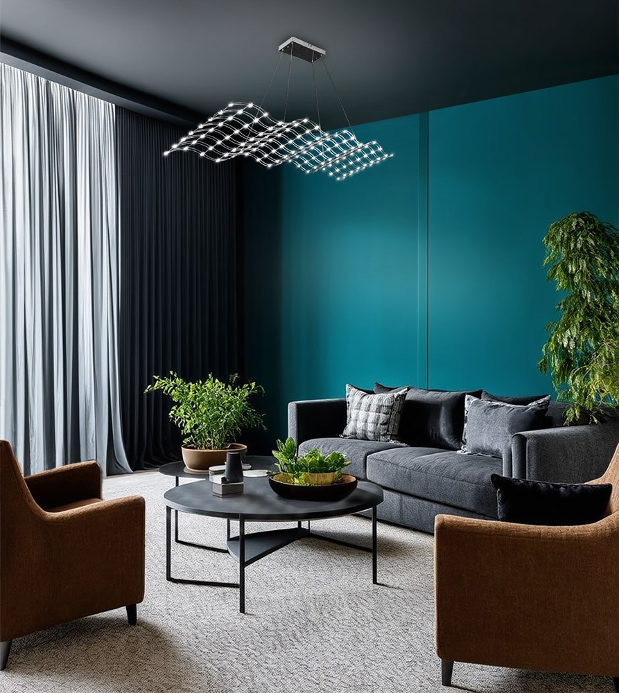 Необычная дизайнерская люстра Montserrat в форме волны создает ощущение мягкости и спокойствия. Плавные линии модели удачно гармонируют с обстановкой в стилистике, модерна, ар-деко. Контрастируют с лаконичностью и геометричностью минимализма и хай-тека, брутальностью лофта. Каркас подвесного светильника выполнен из прочных прутков нержавеющей стали, цвет которых может быть серебристым, золотистым или черным по желанию заказчика. Это позволяет подобрать вариант для конкретного окружения. Светодиоды на пересечениях линий подчеркивают очертания люстры, усиливая воздушность и легкость конструкции. Размеры светильника можно выбрать из стандартных вариантов на сайте, а также предложить свои.