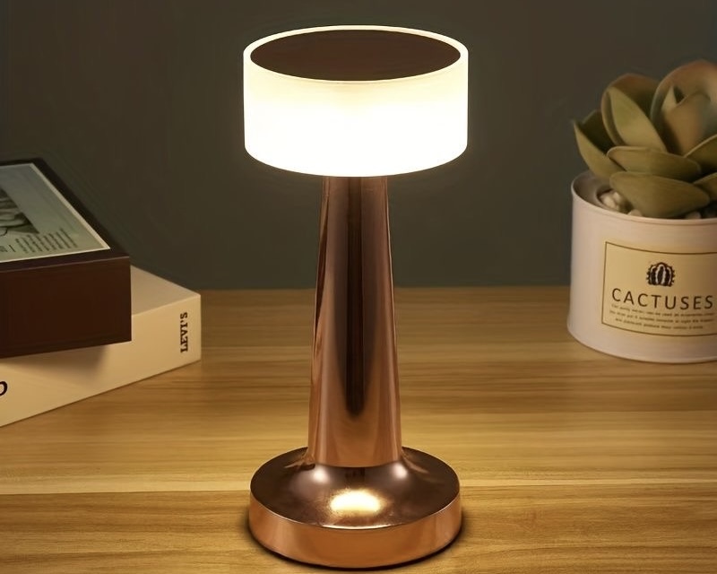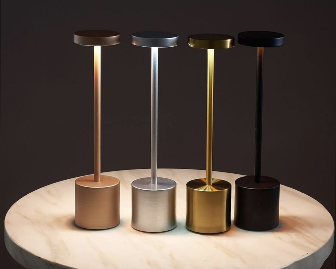 Металлическая настольная лампа с минималистичным дизайном. Для тех, кто в поиске простых форм.