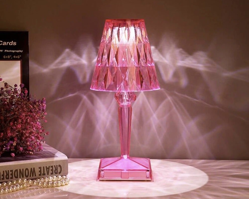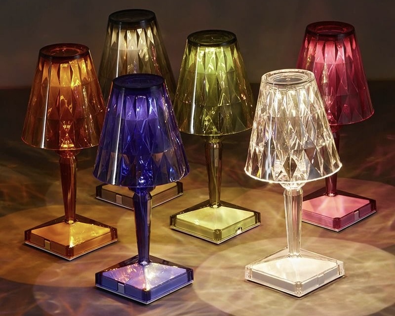 Прозрачная модель со светом в разных оттенках. Выбирая оттенок света - вы выбираете оттенок настольной лампы. Это выглядит необычно и стильно.