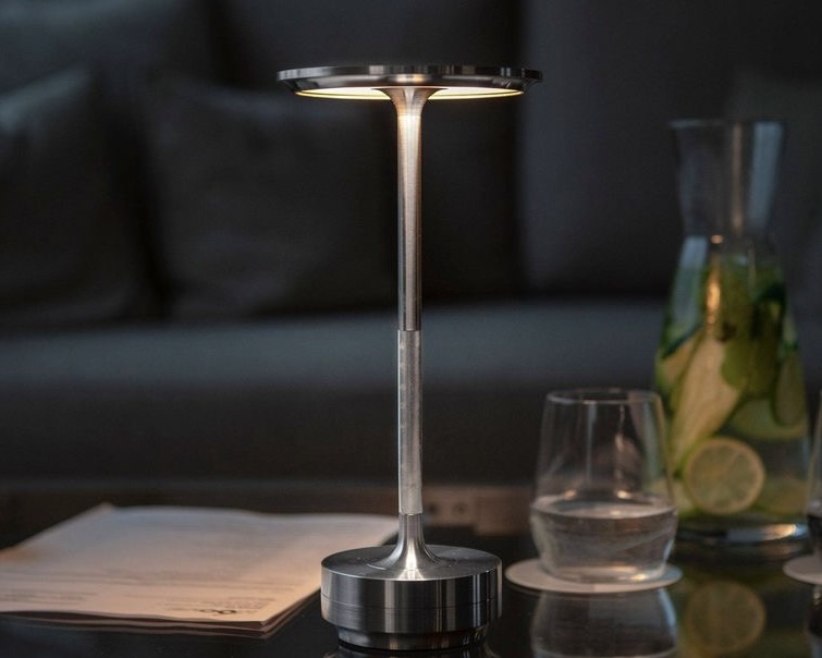 Мы пополнили наш ассортимент лампами, оснащенными аккумулятором. Это очень удобное и практичное решение. Ее можно абсолютно свободно размещать на столе, поскольку она не привязана к электророзетке. Прекрасное решение для ресторанов и других коммерческих пространств.