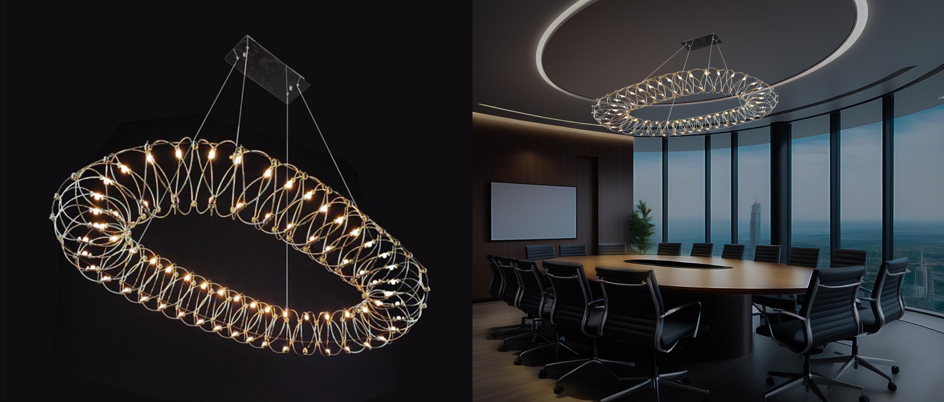 Люстра Elton поражает своим стилем, особенно привлекательно смотрится над длинными столами. Эта модель отличается не только эстетическим дизайном, но и функциональностью - возможностью масштабирования по индивидуальным размерам, что позволяет создать идеальное освещение для любой зоны.